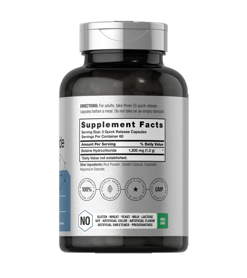 Betaine Hydrochloride, commonly known as Betaine HCl, is a man-made substance. You can now support your daily routine with a high-quality Betaine HCl supplement.