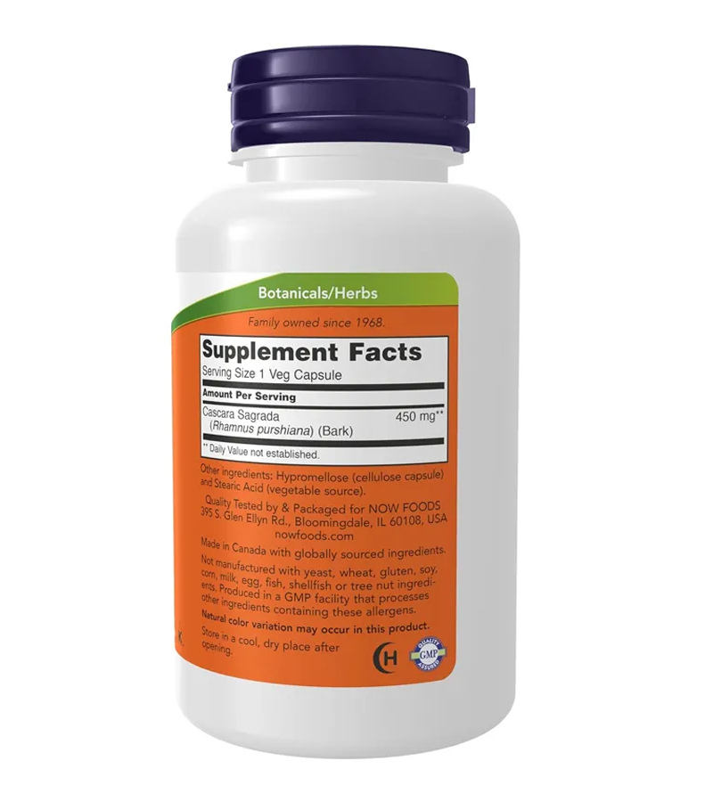 Cascara Sagrada 450mg Capsules - 100 Vegetarian Capsules are used as a natural herbal laxative to support digestive health and regulate bowel movements.