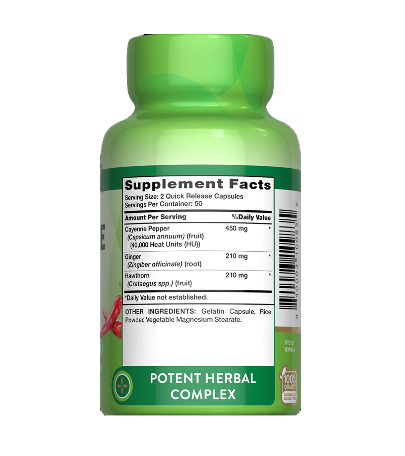 Cayenne Pepper 40,000 HU with Ginger Root - 100 Quick Release Capsules