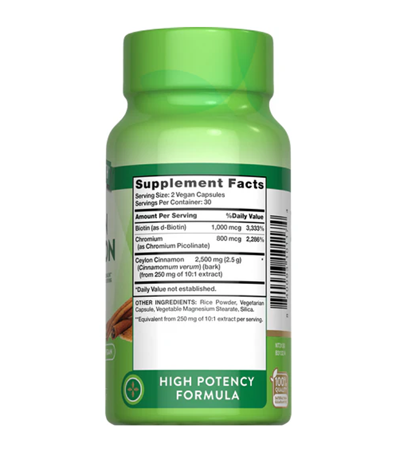 CEYLON CINNAMON 2500 MG WITH BIOTIN & CHROMIUM - 60 Vegetarian Capsules