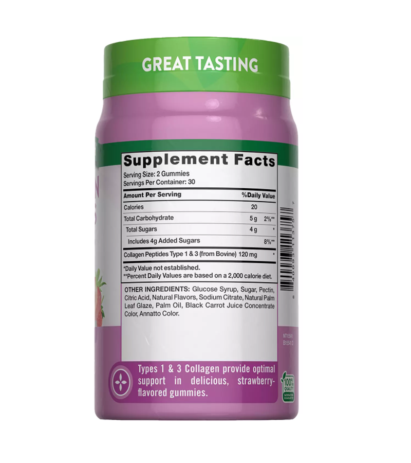 Beauty Never Tasted So Good! So Delish! Bursting with a subtle, naturally delicious strawberry flavor, Nature's Truth Beauty Collagen gummies deliver 120mg of Collagen Type 1 + 3 per serving for optimal support.