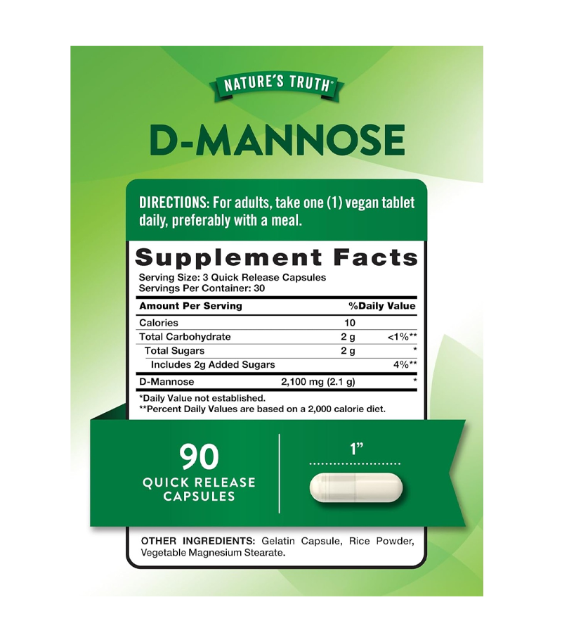 D-mannose is a type of simple sugar that’s related to glucose. Both sugars occur naturally in your body and some plants in the form of starch.