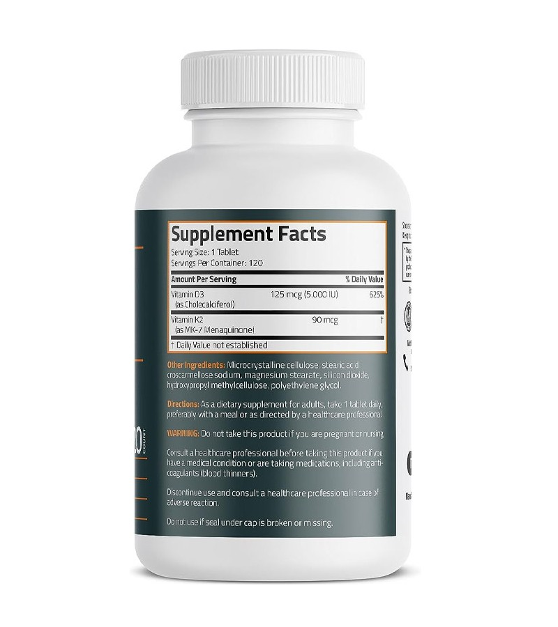 Vitamin K2 mk7 + D3 5000 IU - 120 Tablets